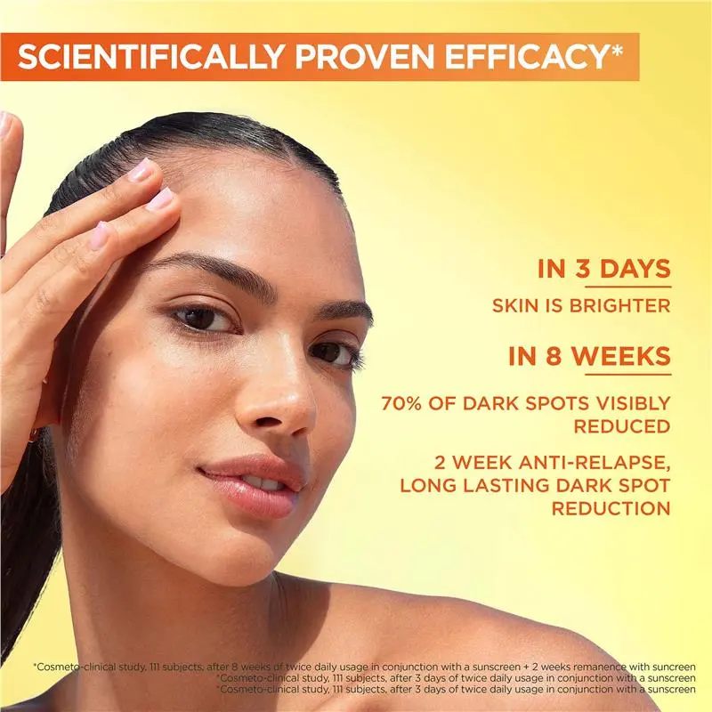 Garnier Vitamin C* Brightening Serum. Scientifically proven : -70% dark spot reduction***