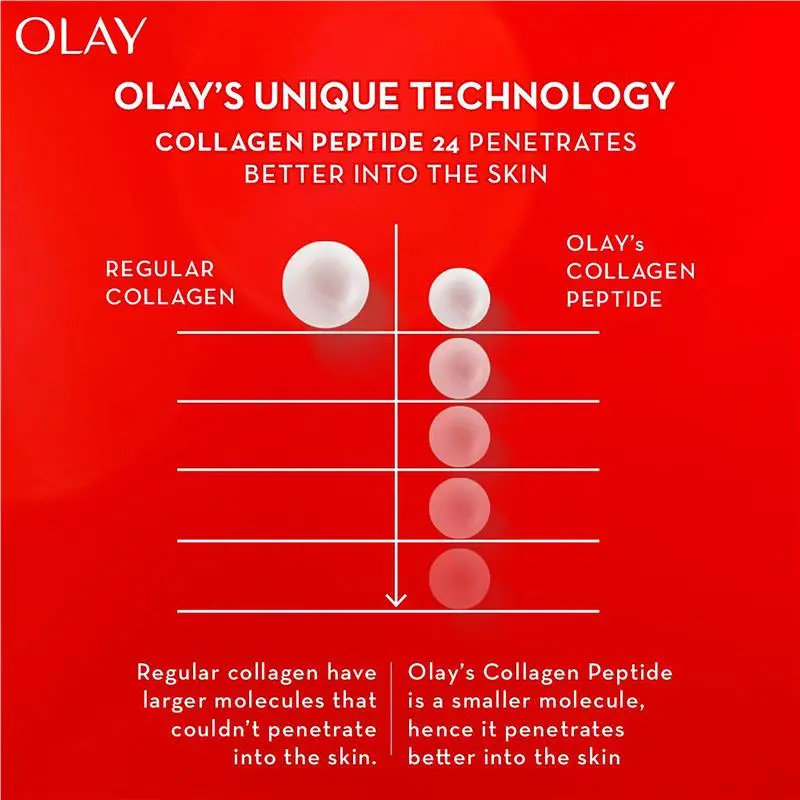 • Olay Regenerist Collagen-Peptide24 is designed with a unique bioavailable technology, allowing the ingredients to penetrate into the skin and work its magic: