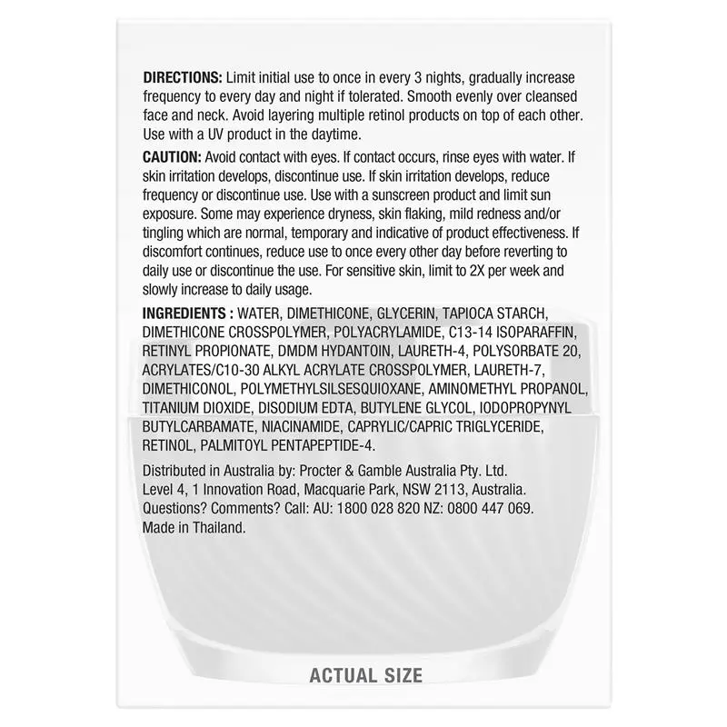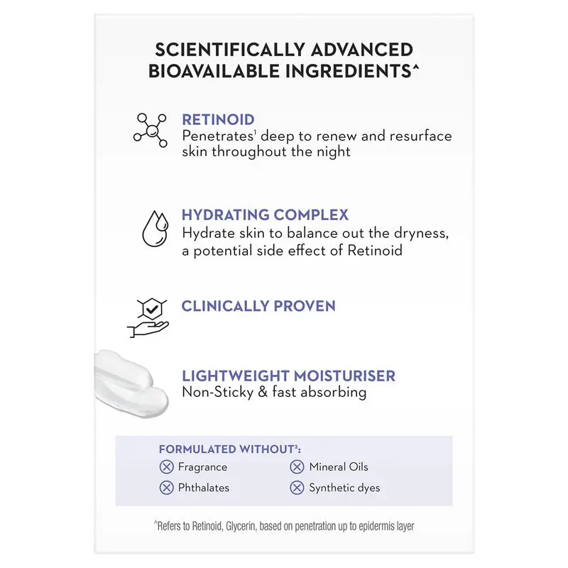 • With bioavailable Retinoid powered by Olay’s Niacinamide